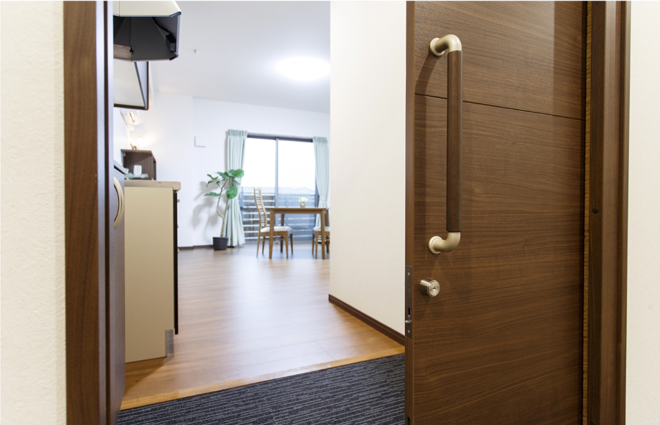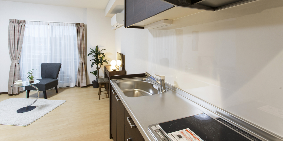 Iクレスト辰巳台は、今まで通りの暮らしを続けていただきたいから、自由に暮らしていただきたいから、全てのお部屋に、2口コンロのIHキッチン、浴室乾燥機付きのお風呂、床暖房、ペアガラスサッシなど充実した設備を完備。もちろん、バリアフリー仕様でプライバシーを重視した設計です。