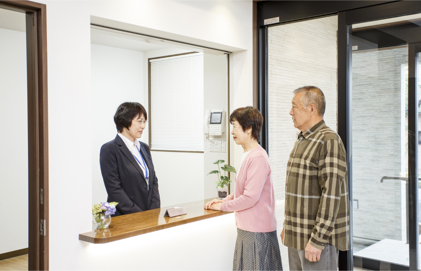 ご来訪者様の受付や取り次ぎ、郵便、宅配便の預かりやゴミ出し、近隣医療機関や介護事業所のご案内、その他にも健康増進、お楽しみいただけるイベントなども企画します。お困りごと、わからないこと、何でもお気軽にご相談下さい。